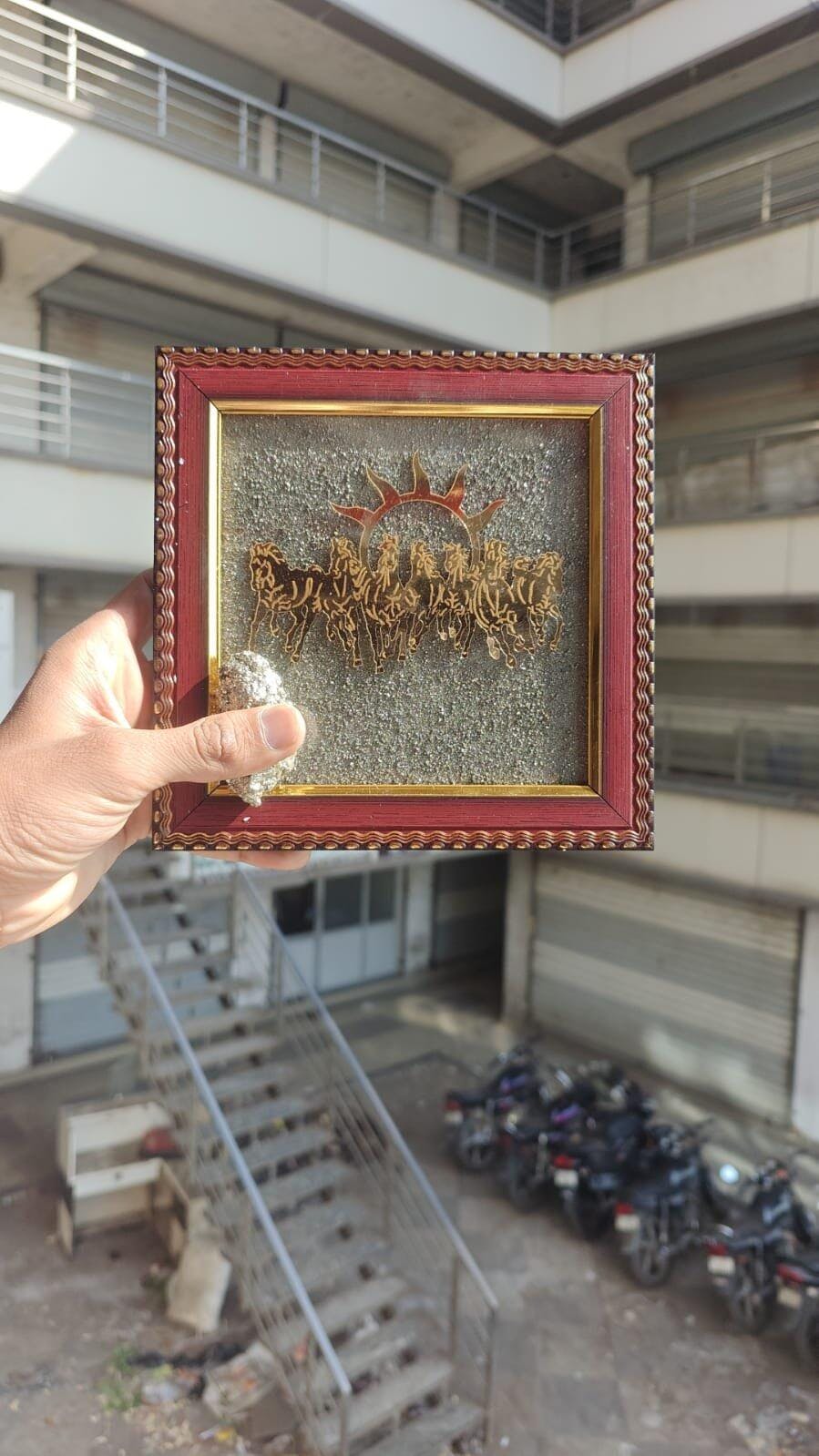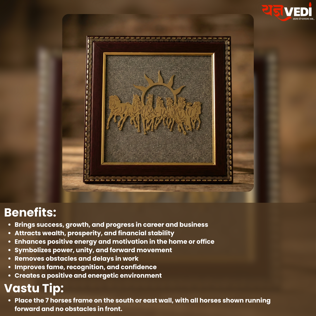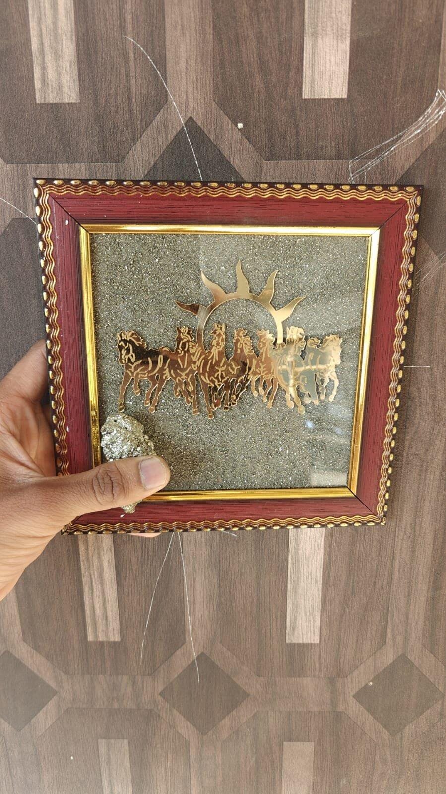 Bring powerful momentum, prosperity symbolism, and premium crystal energy into your space with the 7 Horses Running Raw Pyrite Frame—now bundled with a FREE Original Raw Pyrite Stone (50 gm). This combo is designed for people who want a strong, positive vibe in their home, office, shop, or work desk, while also adding an elegant, spiritual décor element.